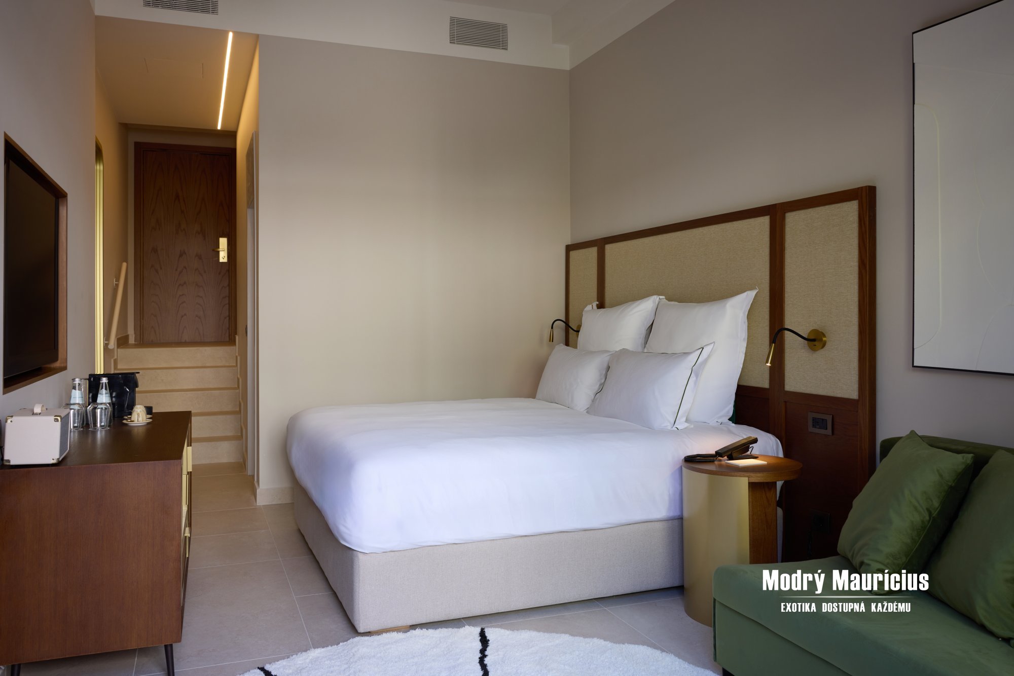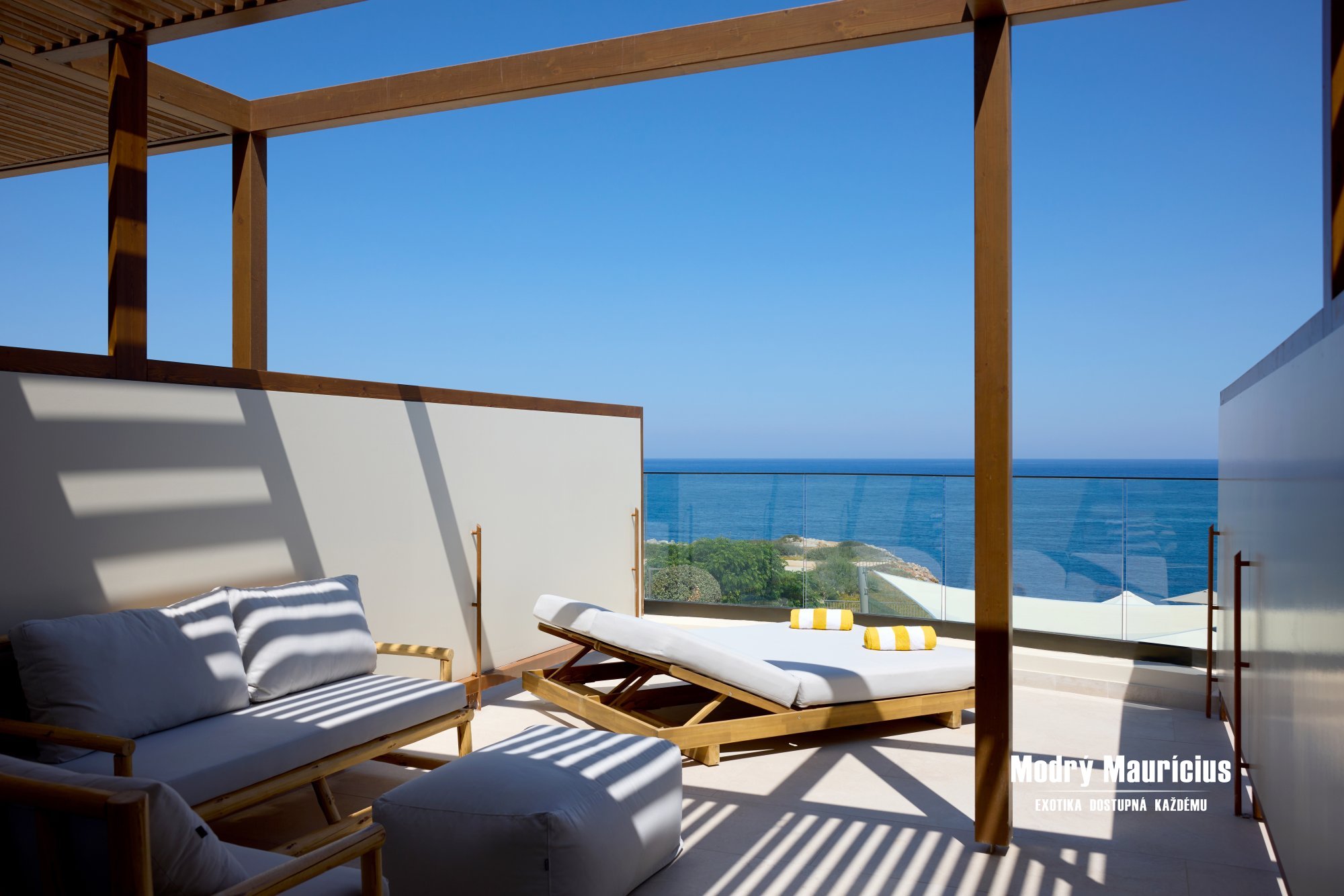 Ubytujte sa v tejto elegantne zariadenej izbe a vychutnávajte si výhľad na tyrkysovú hladinu mora zo súkromného balkóna alebo terasy. Interiéry zahŕňajú spálňu (s manželskou posteľou alebo oddelenými lôžkami), obývací kút s pohodlnou pohovkou a kúpeľňu so sprchou. Kapacita: 3 dospelé osoby.