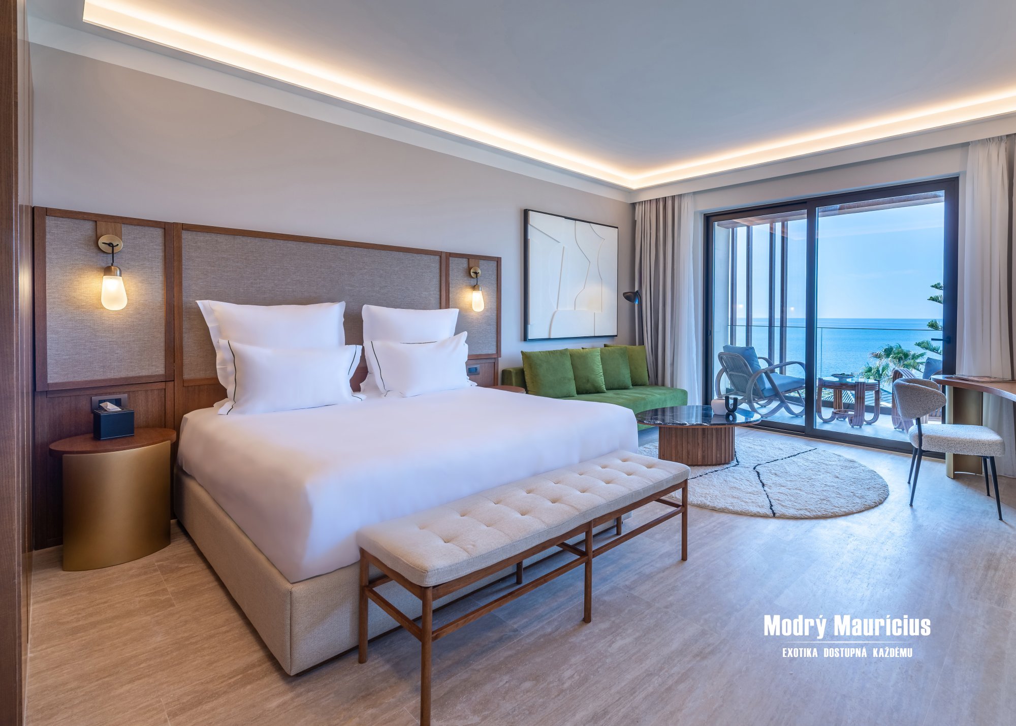 Ubytujte sa v tejto elegantne zariadenej izbe a vychutnávajte si výhľad na tyrkysovú hladinu mora zo súkromného balkóna alebo terasy...