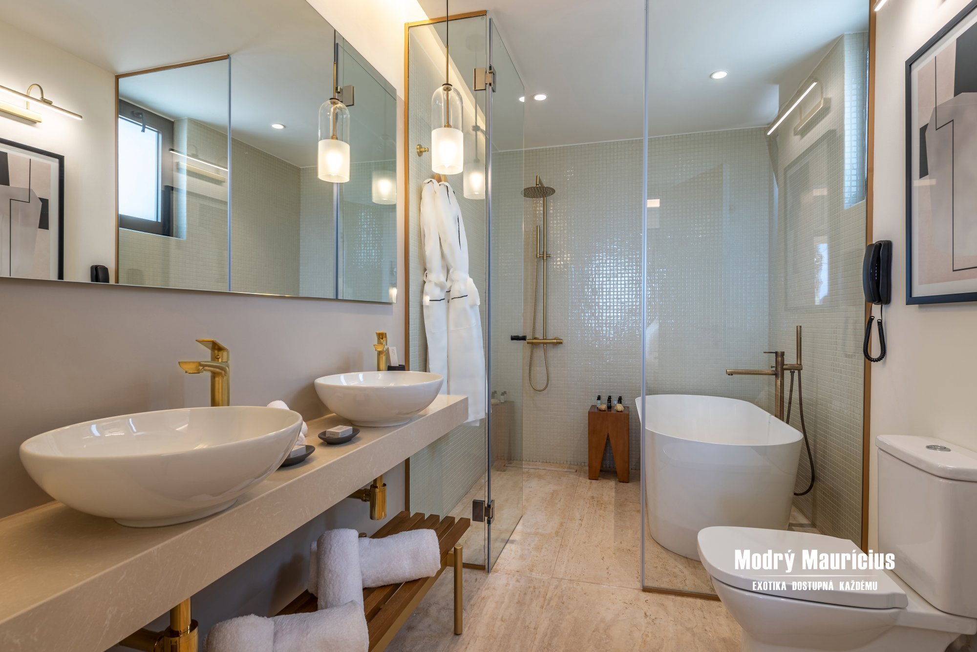 V tomto apartmá sa môžete tešiť na spálňu s manželskou posteľou, obývací kút, kúpeľňu so sprchou aj vaňou a priestrannú terasu s relaxačným bazénom. Z jednotky sa otvára čiastočný výhľad na more. Kapacita: 2 dospelé osoby.