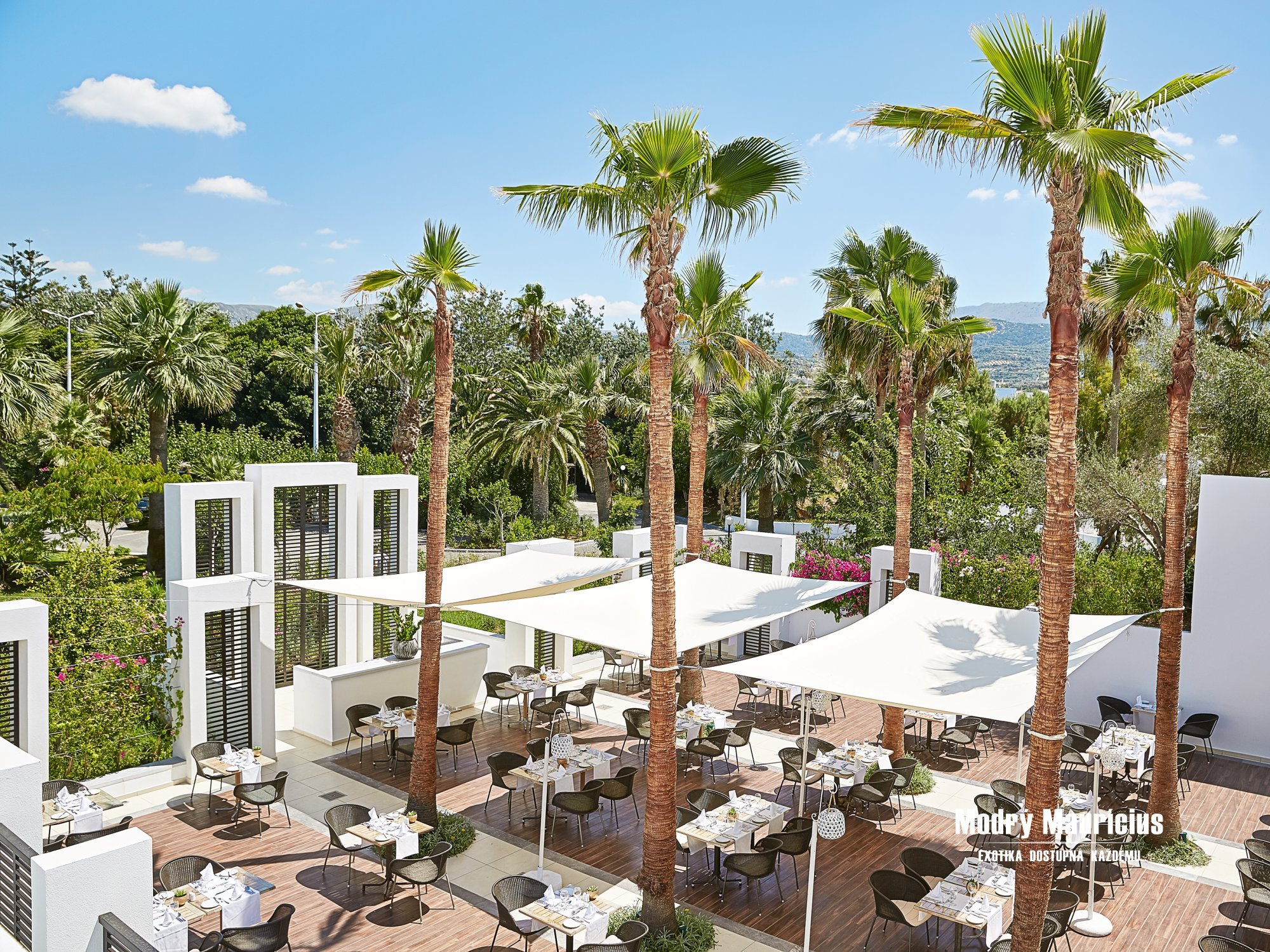 Princess Ariadne Brasserie – V samom srdci hotela, priamo pri bazéne, sa nachádza táto štýlová brasserie pomenovaná po minojskej princeznej. Ponúka celodenné občerstvenie a špeciality z morských plodov inšpirované gréckou, krétskou a stredomorskou kuchyňou. Dajte si na obed tradičný dakos alebo kalamáre a užite si uvoľnenú atmosféru s krásnym výhľadom na more. Otváracie hodiny: 10:30–18:00.