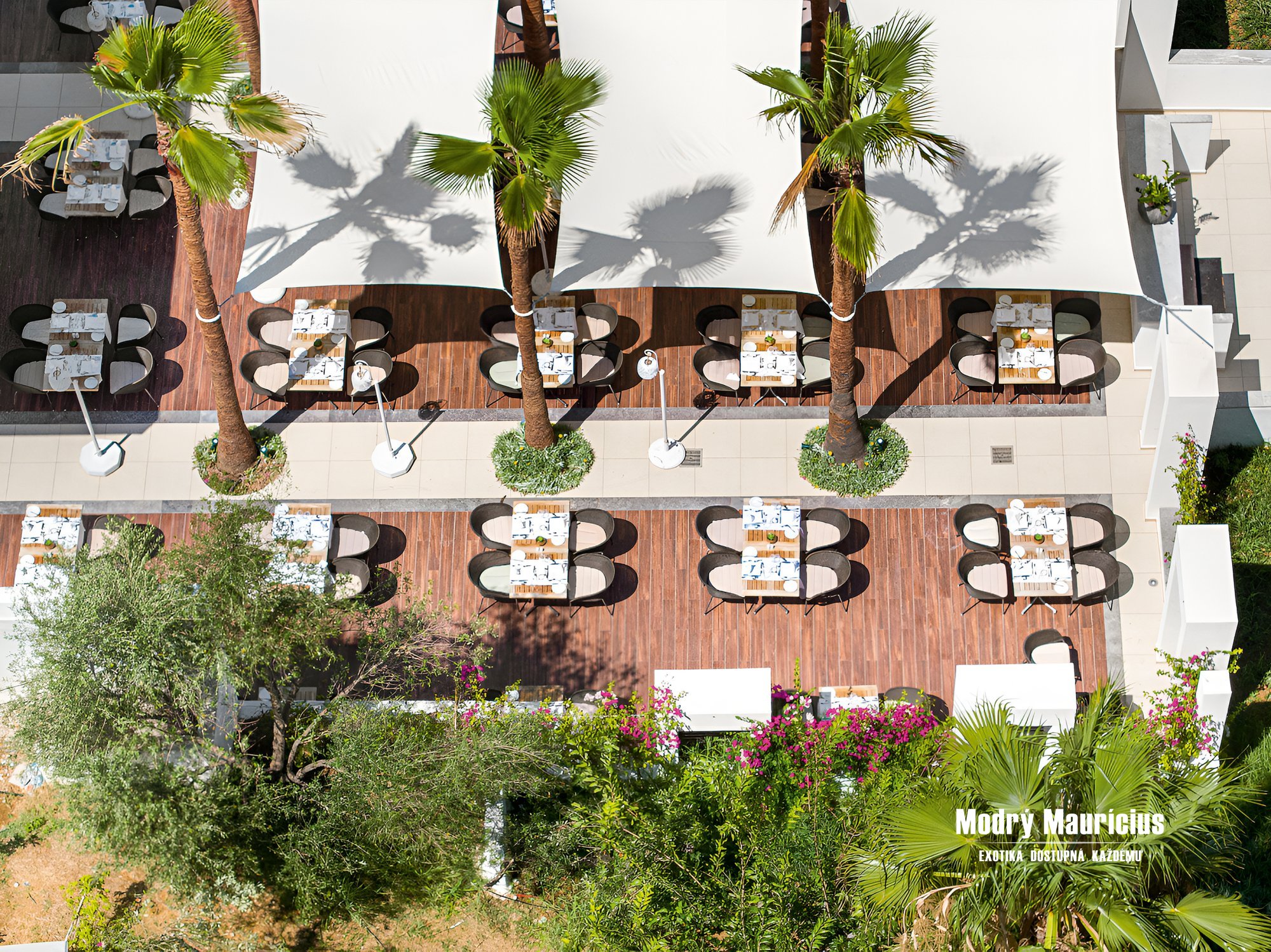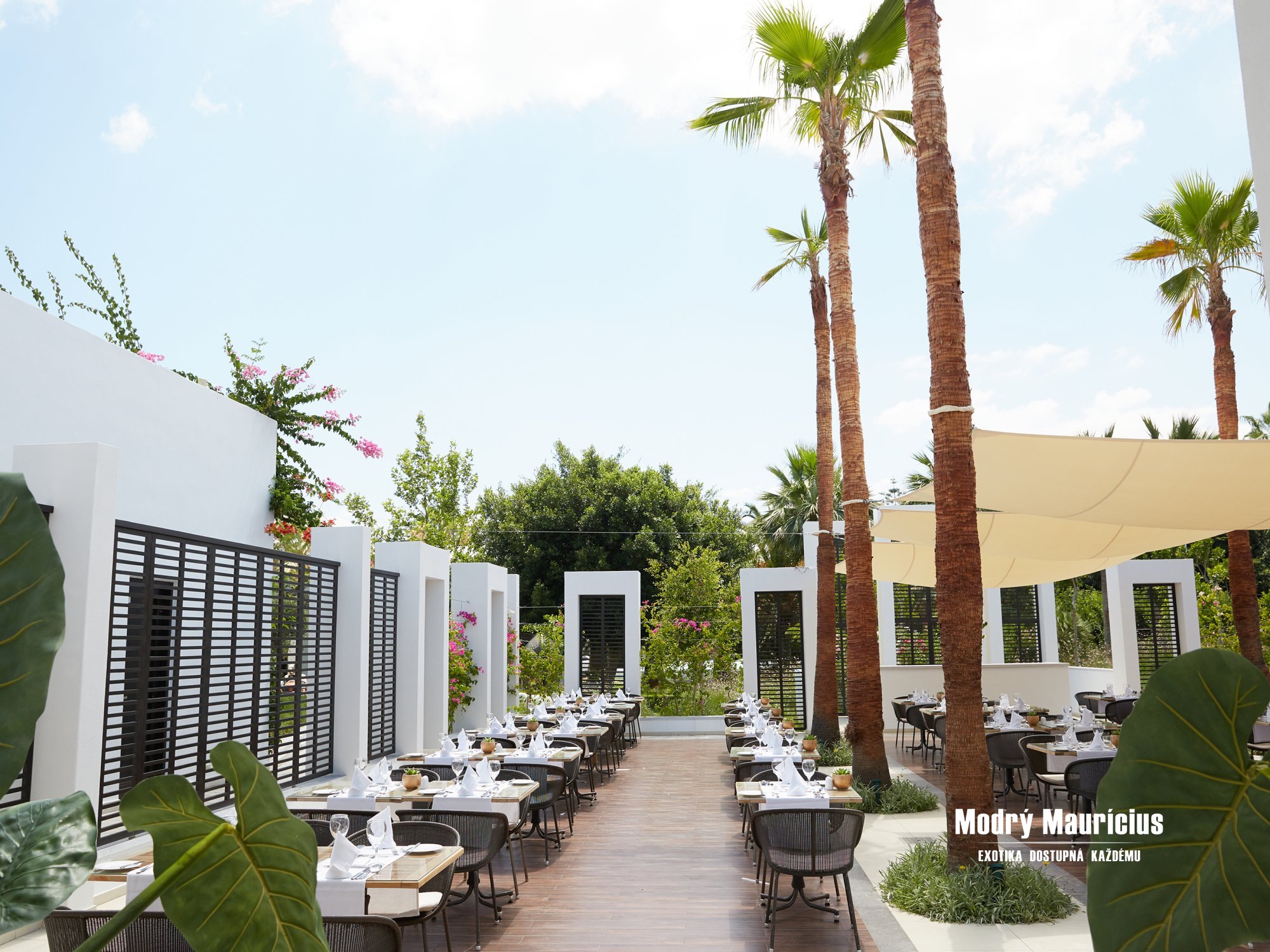 Labyrinth Atrium Restaurant – Táto moderná reštaurácia s vonkajším sedením na tienistých terasách je inšpirovaná okolitou stredomorskou prírodou s očarujúcimi bugenvíliami a aromatickými bylinkami. Nájdete tu grilované špeciality, výborné údeniny aj luxusné zákusky. Súčasťou reštaurácie sú aj živé stanice, kde vám miestni kuchári pripravia všetko od klasických receptov až po pizzu či paellu. Okrem toho si môžete vychutnať víno, čerstvé zeleninové a ovocné šťavy a skvelú kávu. Otváracie hodiny: raňajky 7:30–10:30, obed 12:30–14:30, večera 18:30–21:30, detské menu 11:00–17:00.