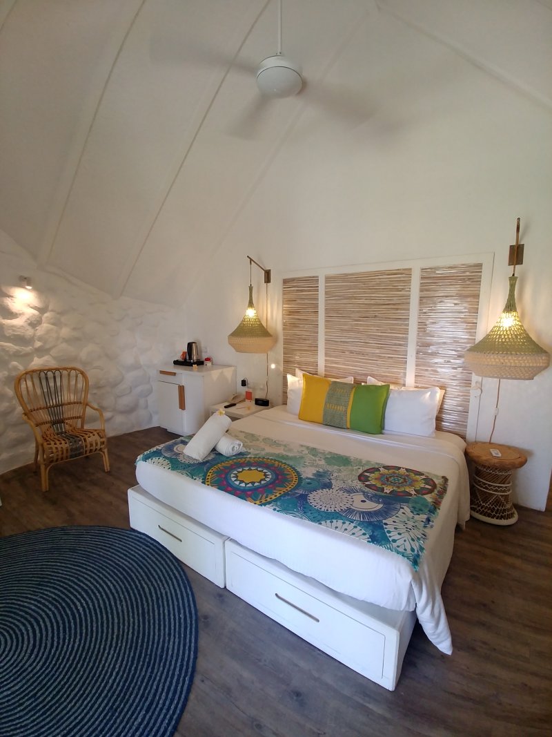 Do Paradis vil se ubytuje maximálně 8 hostů (maximálně 4 dospělí), do Presidental vily lze pak ubytovat až 10 hostů (maximálně 6 dospělých). Samozřejmostí u každé vily je privátní pláž, bazén s lehátky a houpačkou, dále je zde k dispozici gril, kuchyň a služby vlastního komorníka. Po prohlídce resortu jsme spěchaly pozorovat západ slunce na pláž, ale nakonec se nám slunce, tak jako každý den, schovalo za mraky.