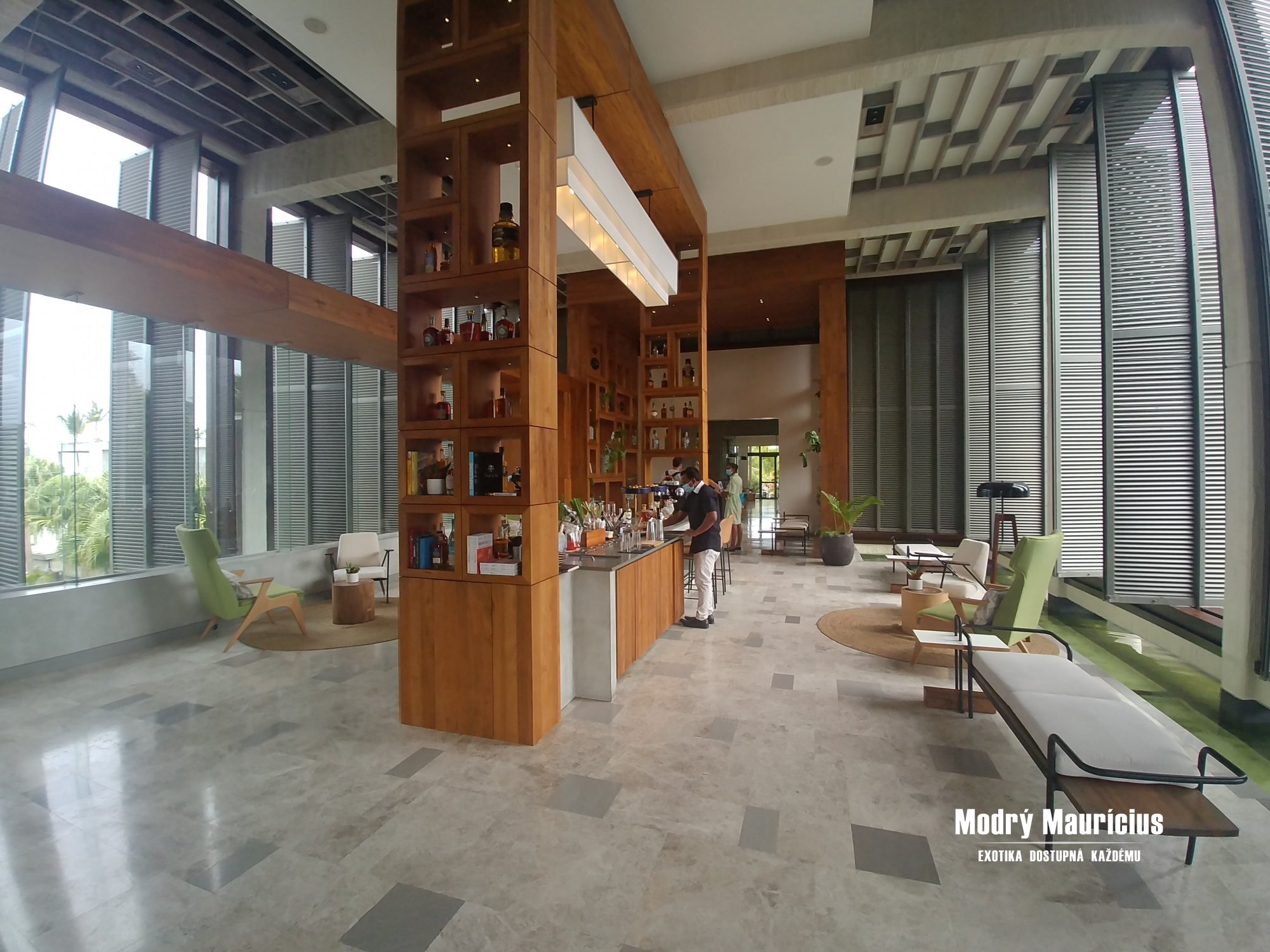 V hotelu došlo oproti naší poslední návštěvě ke kompletní renovaci lobby, která nově nabízí zajímavý koncept baru s osvěžujícími nápoji. Vznikl Departure Room, kde můžete strávit čas od opuštění hotelového pokoje po odjezd z resortu. Nabízí útulné společenské prostory a veškeré potřebné zázemí včetně sprch.