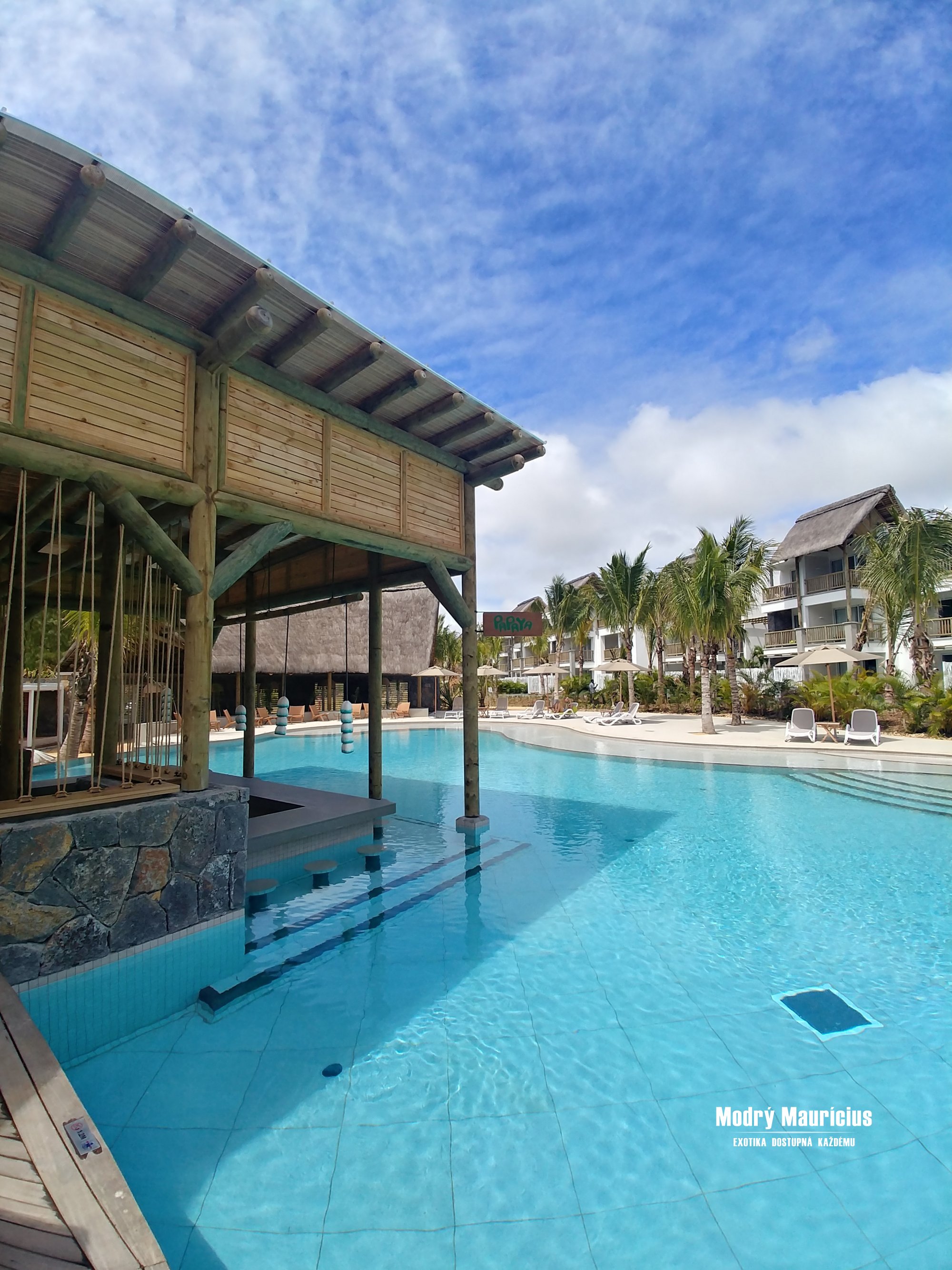 Druhý den jsme hned po snídani musely podstoupit další antigenní test, který nám přišli udělat přímo na terasy našich pokojů. Dále jsme měly hned po snídani na programu prohlídku hotelu Sunrise Attitude. V levé, klidnější části resortu se nachází 8 úplně nových vilek – 4 jsou situovány s výhledem do zeleně a 4 s výhledem k silnici. Ty jsou od společných prostor odděleny zahradou a k restauracím je to od nich dále. Každá z vilek má svou předzahrádku se soukromým bazénem a ubytovat se zde můžou 2 dospělí. V další části resortu, která je nově přistavěná, se nachází Couple swim up pokoje, které mají přímý přístup do bazénu a kde jsme byly ubytované i my. Nad nimi v 1. a 2 patře jsou pak pokoje Couple partial sea view, které mají výhled na bazény, zahrady a částečně také na moře. Hlavní restaurace The Market se nachází taktéž v nové části hotelu a podávají se zde snídaně, obědy i večeře formou bufetu. Další restaurací je Kot nou, která je typická pro všechny hotely z řetězce Attitude. Je to tradiční mauricijská restaurace, kde můžou hosté ochutnat mimo jiné také kreolská jídla.