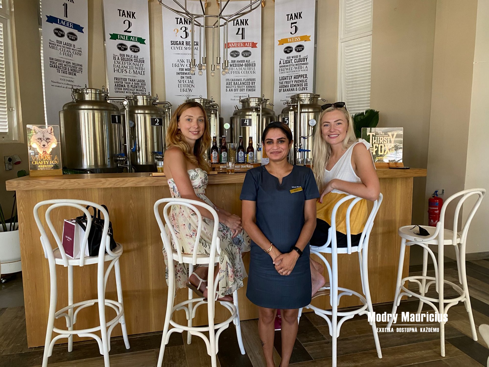 Tento resort má jako jediný v celém Indickém oceánu Buddha Bar a pokud by ho chtěl mít i jiný resort, musí mít od Sugar Beach povolení. K Buddha Baru nově přistavěli také sushi restauraci. Dále jsme navštívily místní SPA, kde jsme dostaly i malý dáreček v podobě vzorků kosmetiky, pojmenované stejně, jako lázně, tedy Cinq Mondes Spa. Nakonec jsme byly ještě pozvány na ochutnávku mauricijských piv v koutku, kde jsou přímo pivní tanky. Celkem jsme ochutnaly 5 druhů piv, z nichž jedno se mění podle sezóny. Poté už pro nás přijel náš řidič, aby nás mohl odvézt do dalších hotelů.