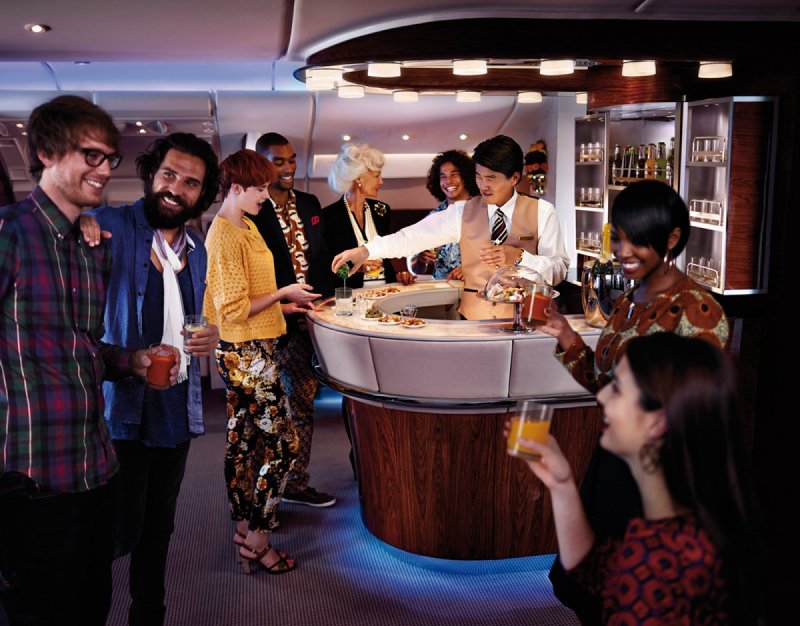 • plnohodnotný bar a spoločenská zóna “Onboard Lounge” (na plaubách A380)