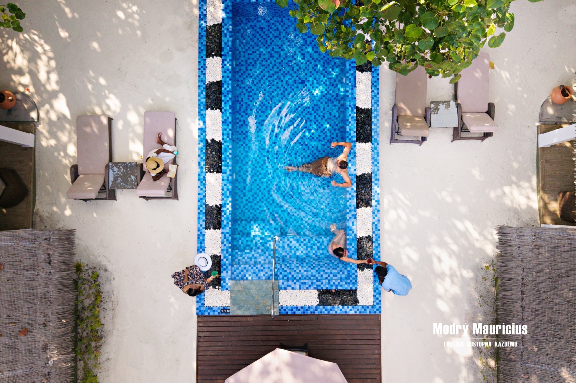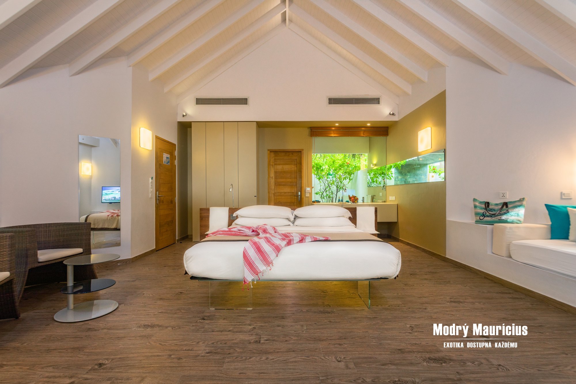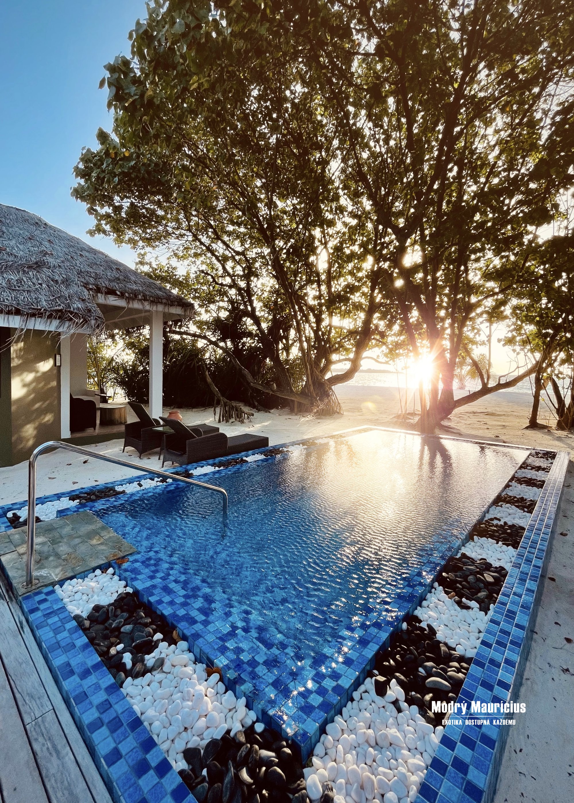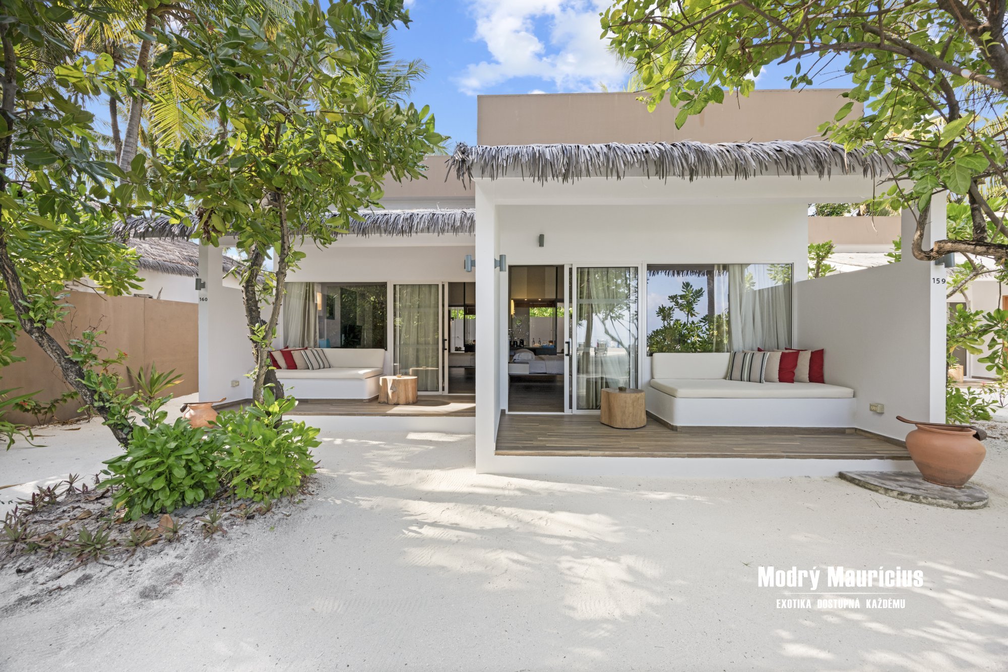 Vám zajistí nejvyšší možný luxus. Jedná se o nejprostornější kategorii ubytování, ve kterém naleznete velkolepý obývací pokoj, dvě krásně zařízené ložnice, venkovní jídelnu a privátní bazén. Díky skvělému umístění na pláži se můžete kochat výhledem na lagunu.