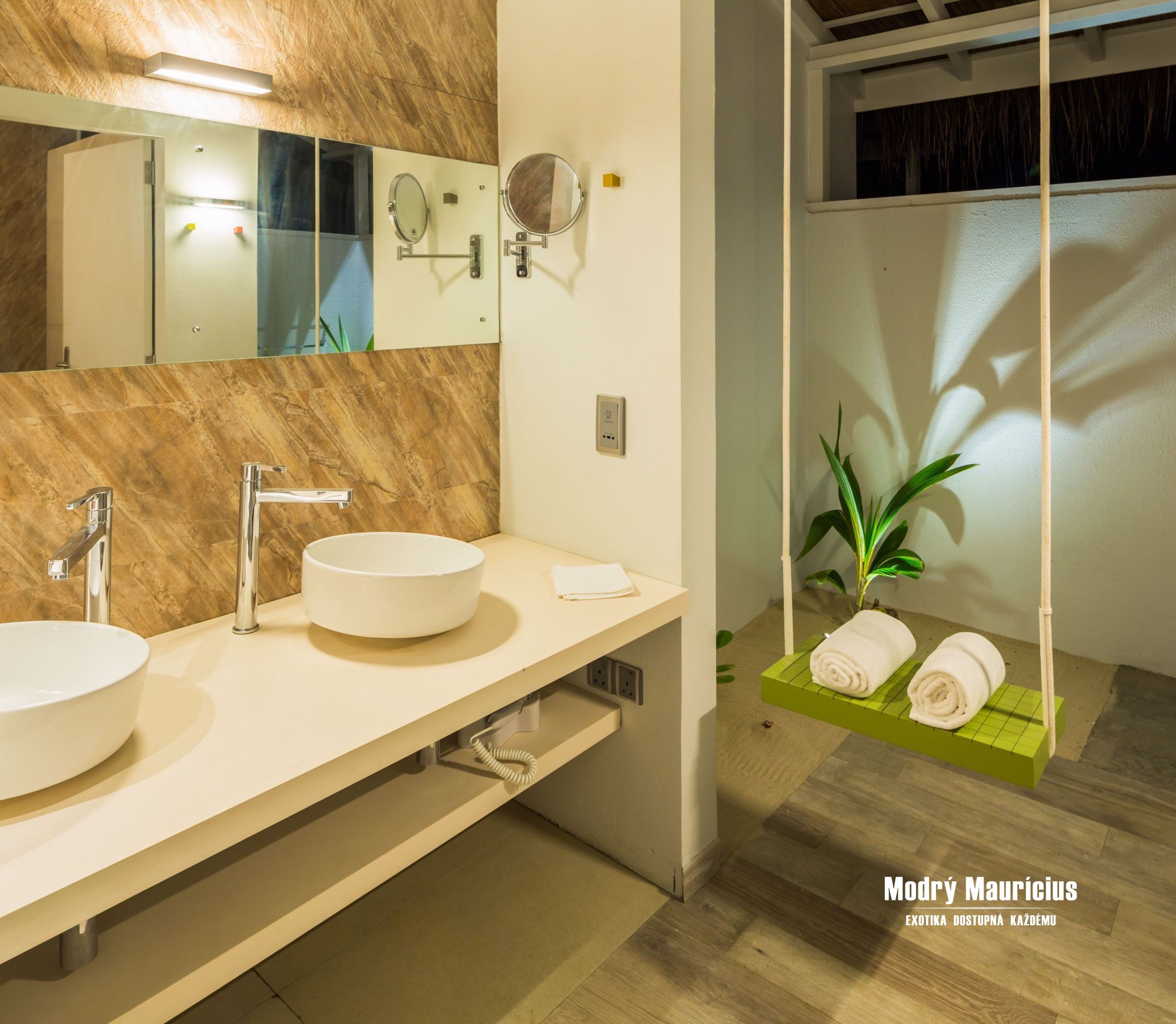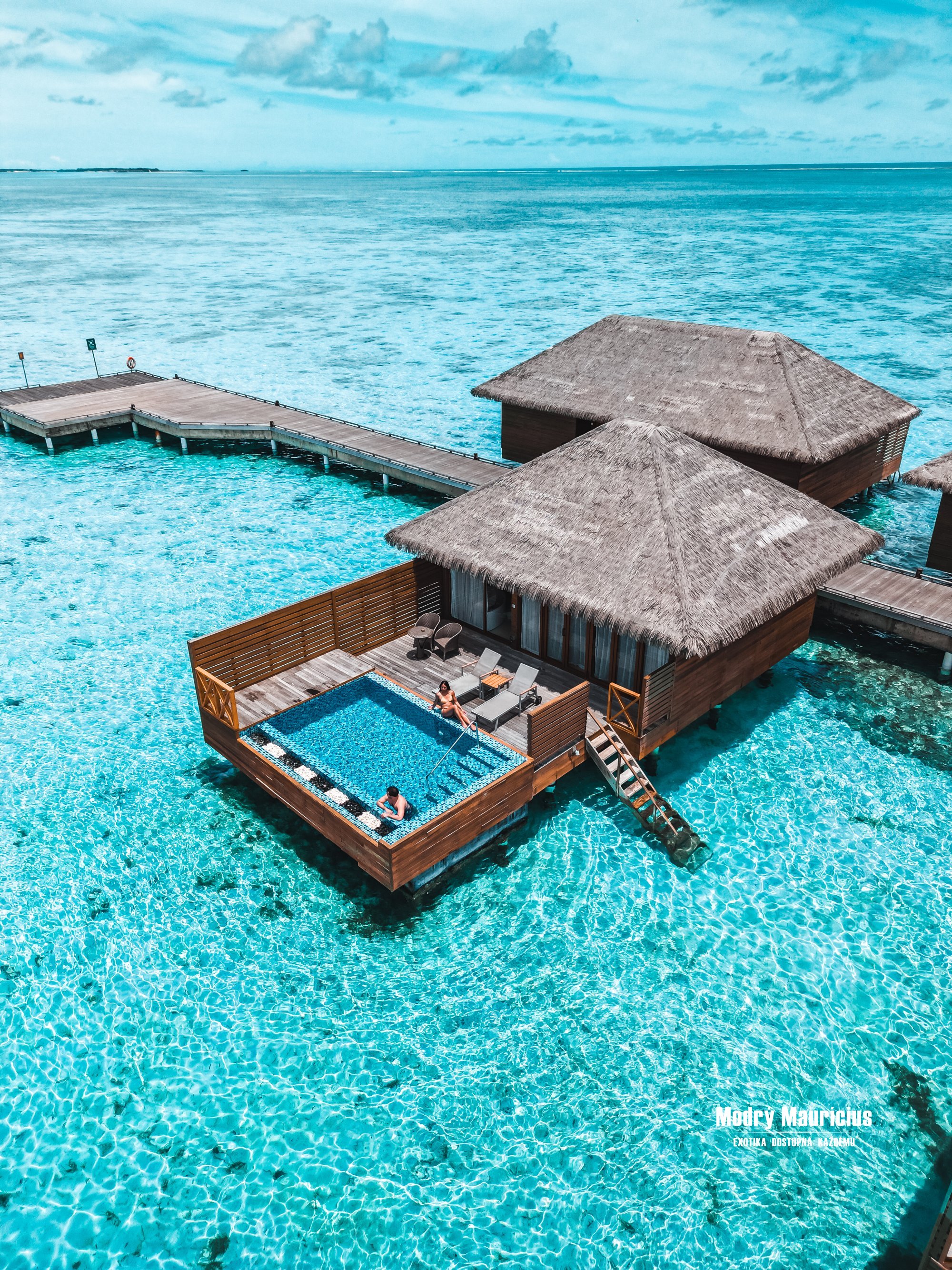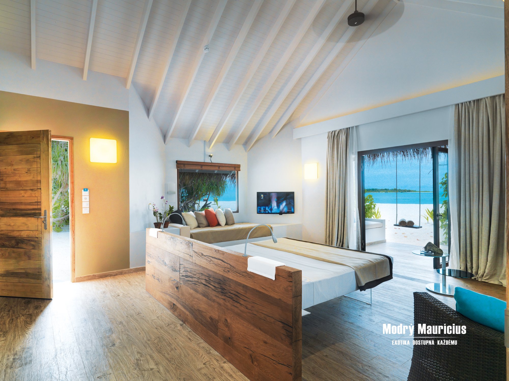 Každá vila je speciálně navržena tak, aby Vám poskytla co největší komfort a pohodlí. Moderní vybavení obklopené tyrkysově modrým oceánem vytváří dojem tropického klidu a zároveň luxusu. Spojení maledivské přírodní krásy a vytříbeného italského stylu můžete vidět na konkrétních prvcích jako houpací pohovky nebo rustikální stoly z divokého dřeva.