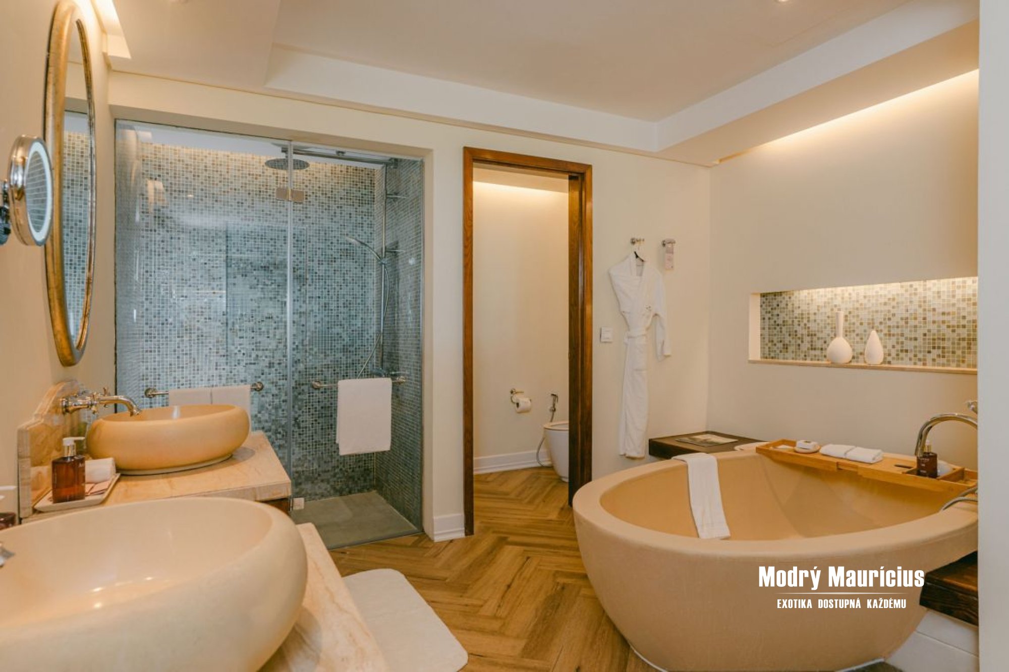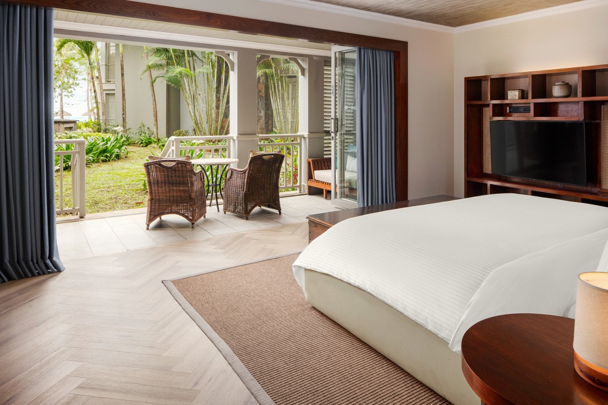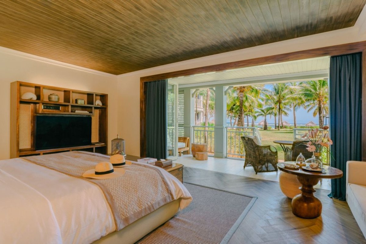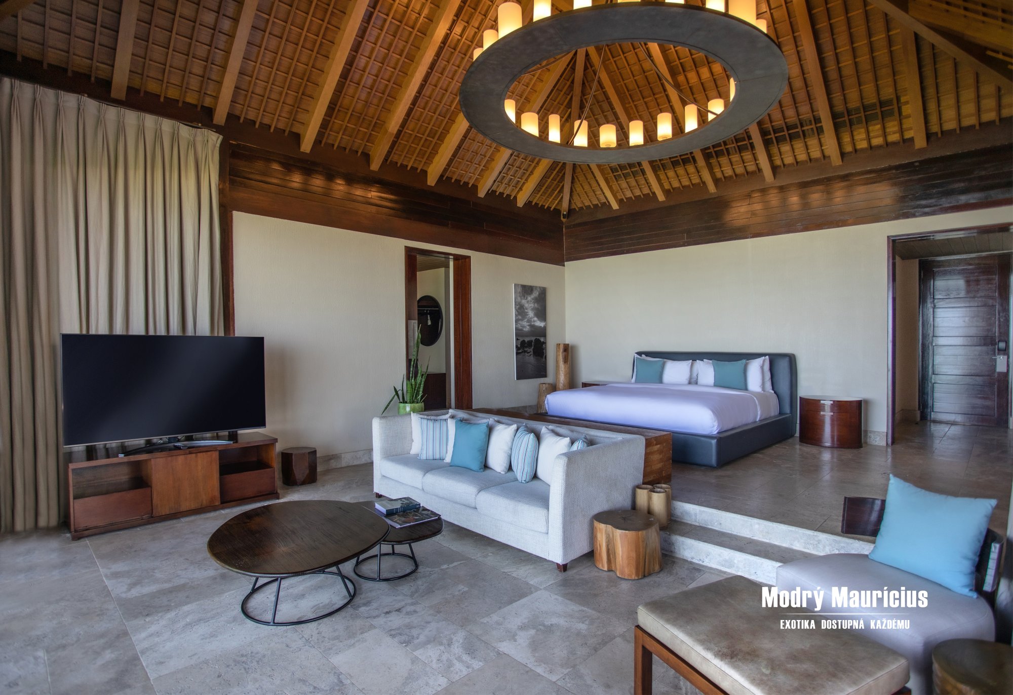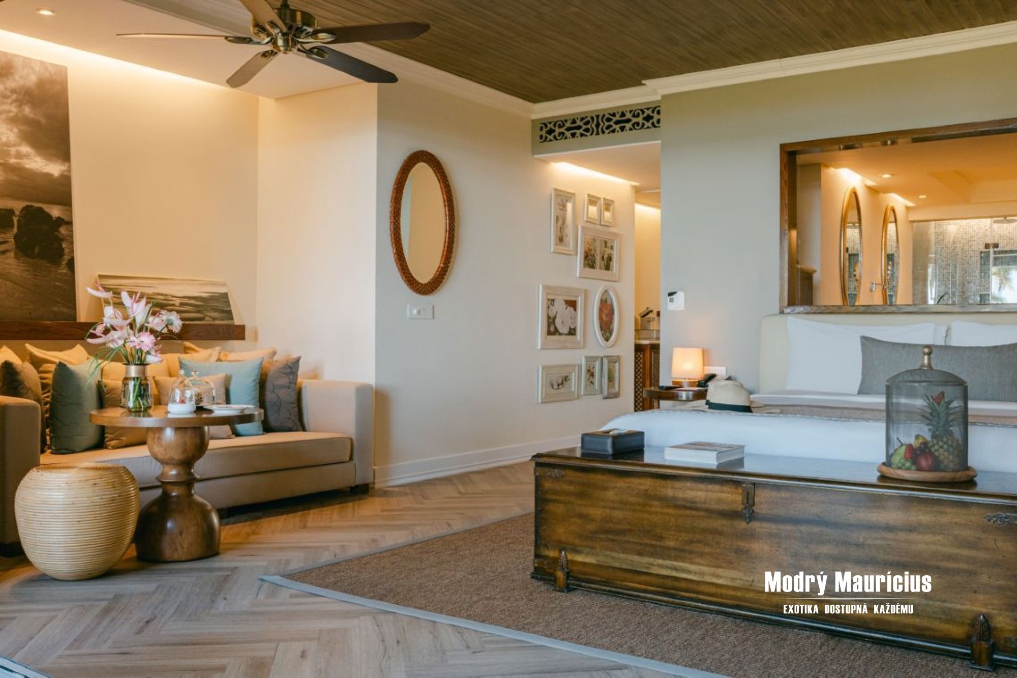 Priestranné, luxusne zariadené izby ponúkajú veľkorysý otvorený interiér, ktorý ústi na zariadenú terasu s priamym prístupom na pláž cez hotelové záhrady. Spálni dominuje manželská posteľ King, nechýba ani pohodlná pohovka a mramorová kúpeľňa so sprchovým kútom, vaňou a dvojitým umývadlom.