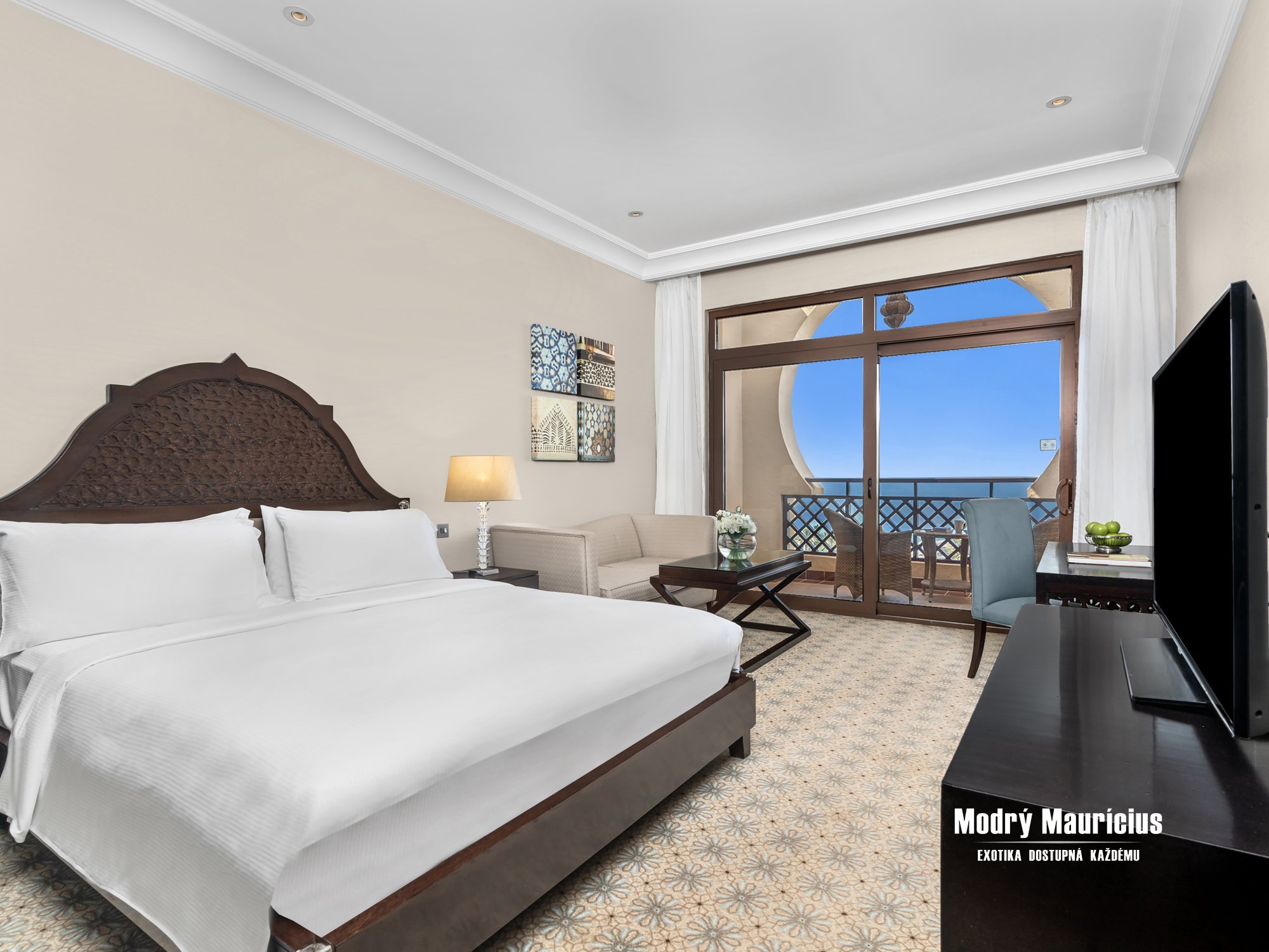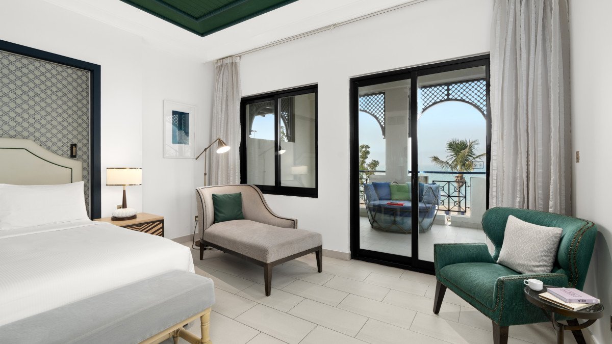 Suity s jednou ložnicí jsou oázou luxusu s prostornou terasou a výhledem na moře. Mají samostatný obývací pokoj pro stylový odpočinek a lákavou postel velikosti king, která slibuje ty nejsladší sny.