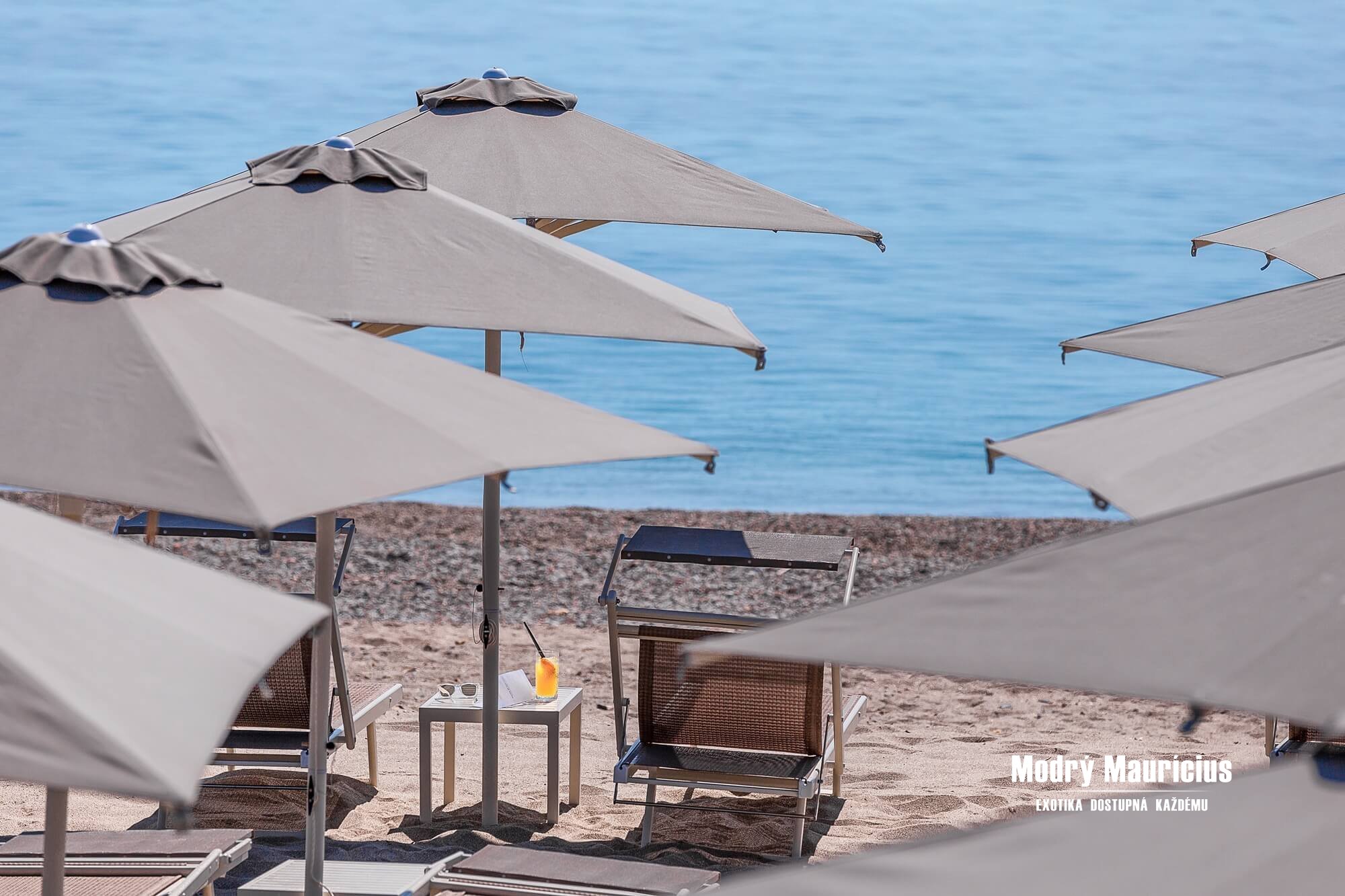 Široká pláž s jemnými okruhliakmi je dostupná priamo z hotelovej záhrady. Pre hotelových hostí sú k dispozícii aj lehátka a slnečníky. Hostia izieb Junior Suite, One Bedroom Suite a Nature Art Room majú rezervované lehátka a slnečníky v prvých dvoch radoch.
