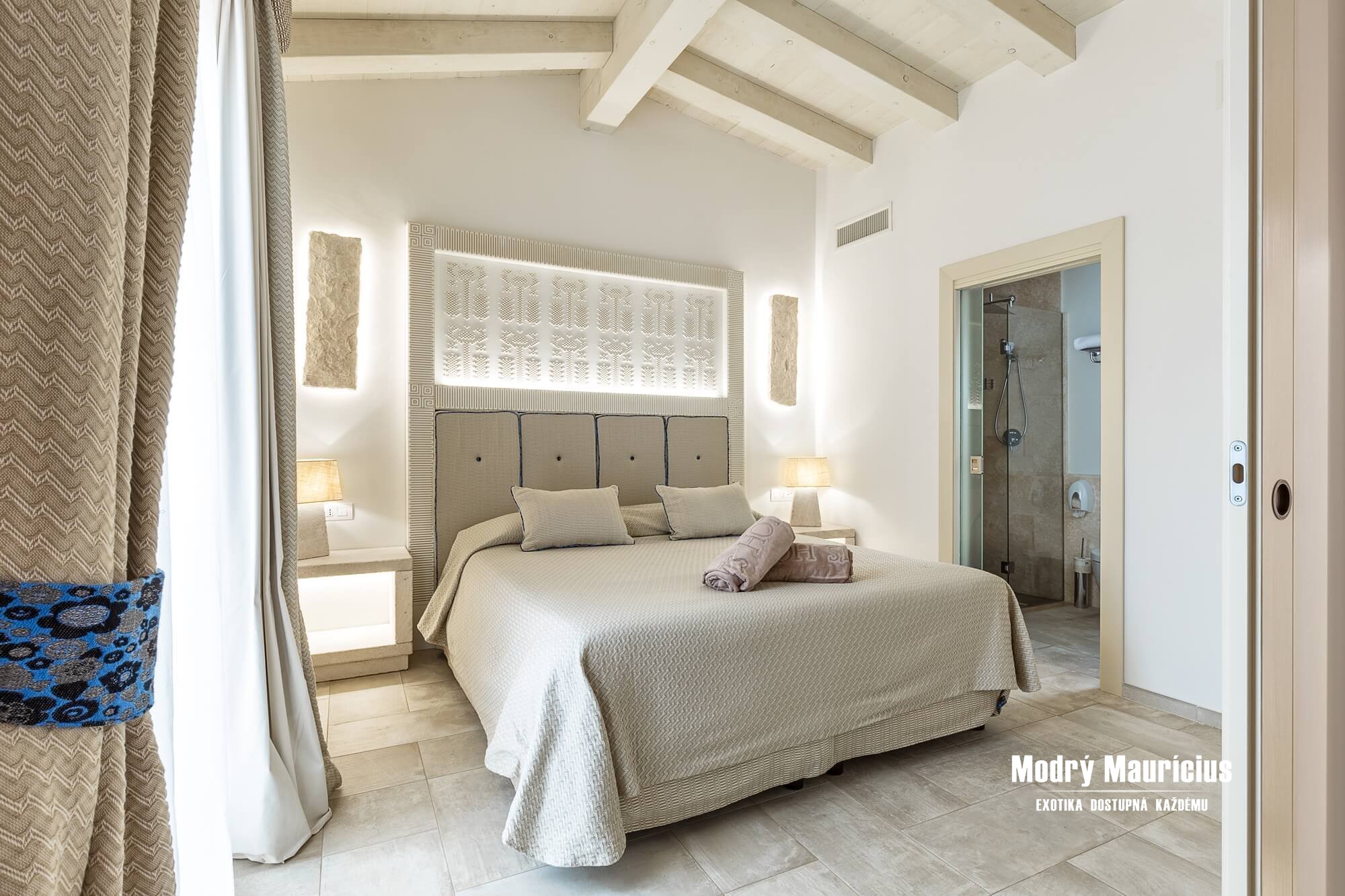 Areál hotela pôsobí veľmi pokojným a priateľským dojmom, obytné budovy sú rozmiestnené okolo bazéna, s výhľadom do krásnych záhrad alebo na pobrežie a more. Izby sú zariadené v tradičnom talianskom štýle, klasický drevený nábytok je na pohľad veľmi príjemný.