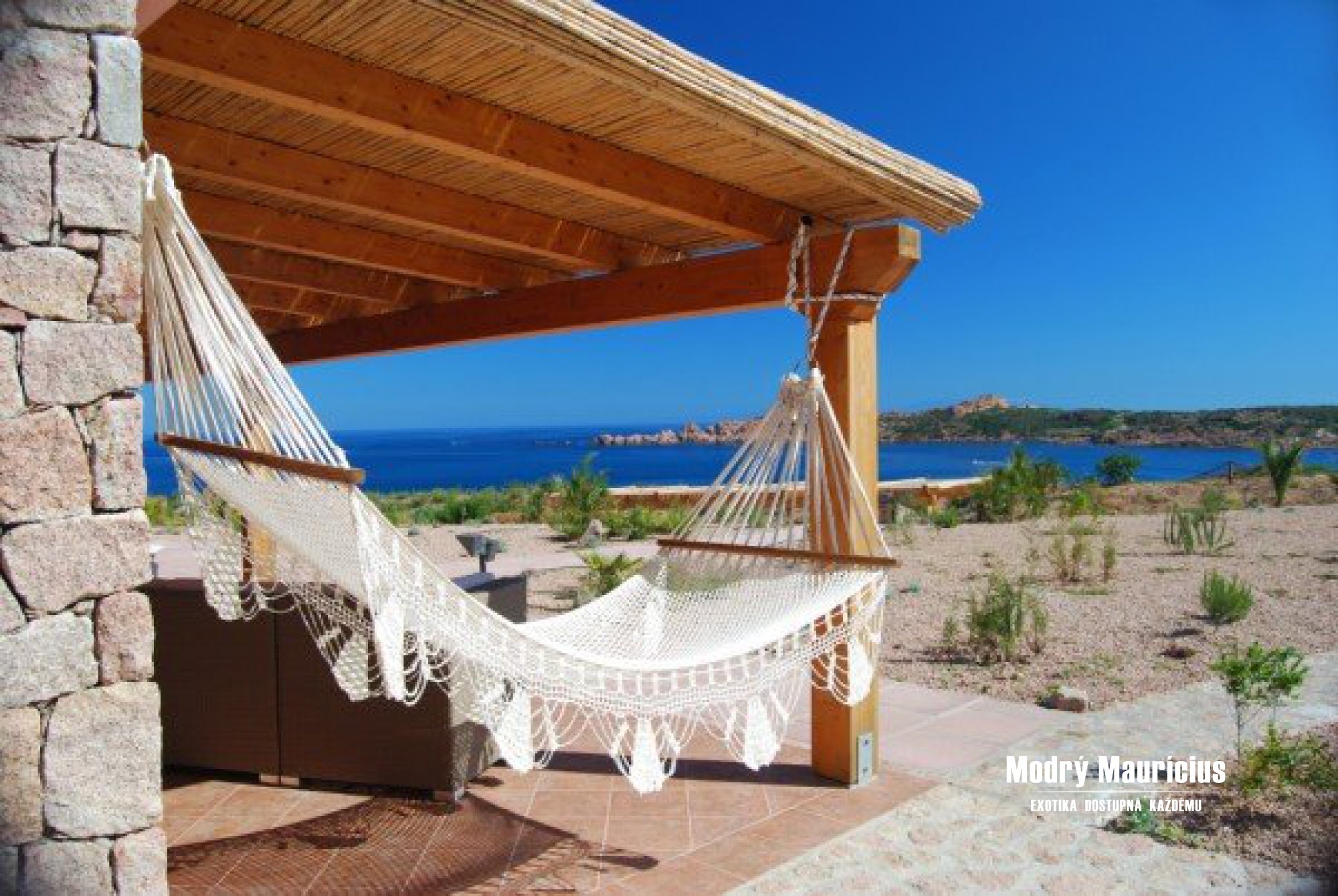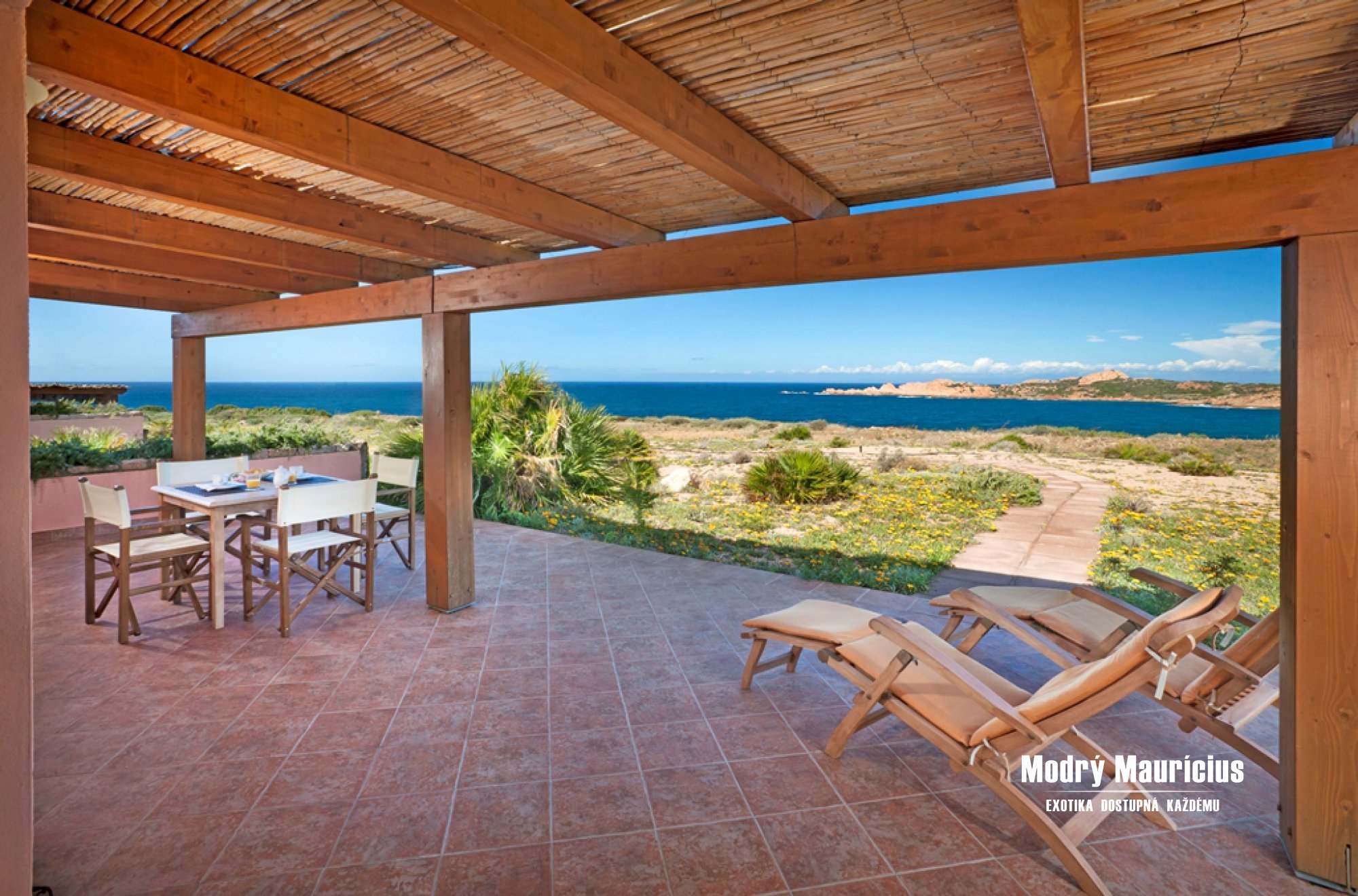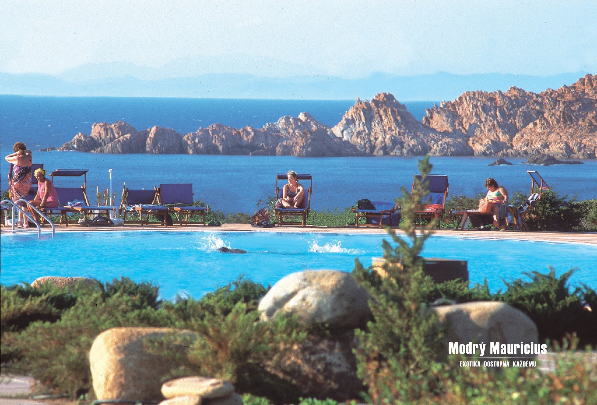 - prostor na útesu se slunečníky