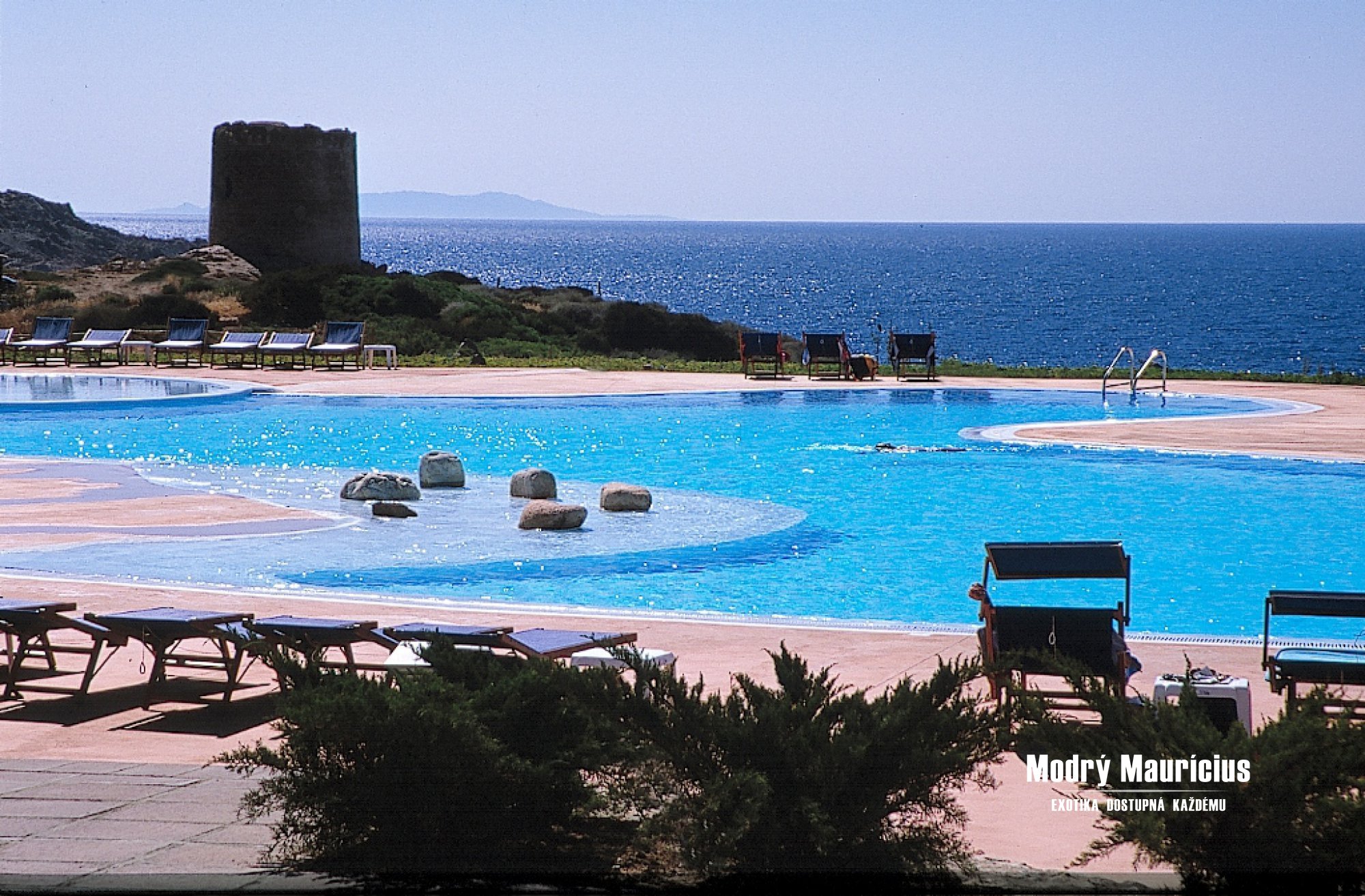 - bazén s mořskou vodou, s lehátky a službami plavčíka