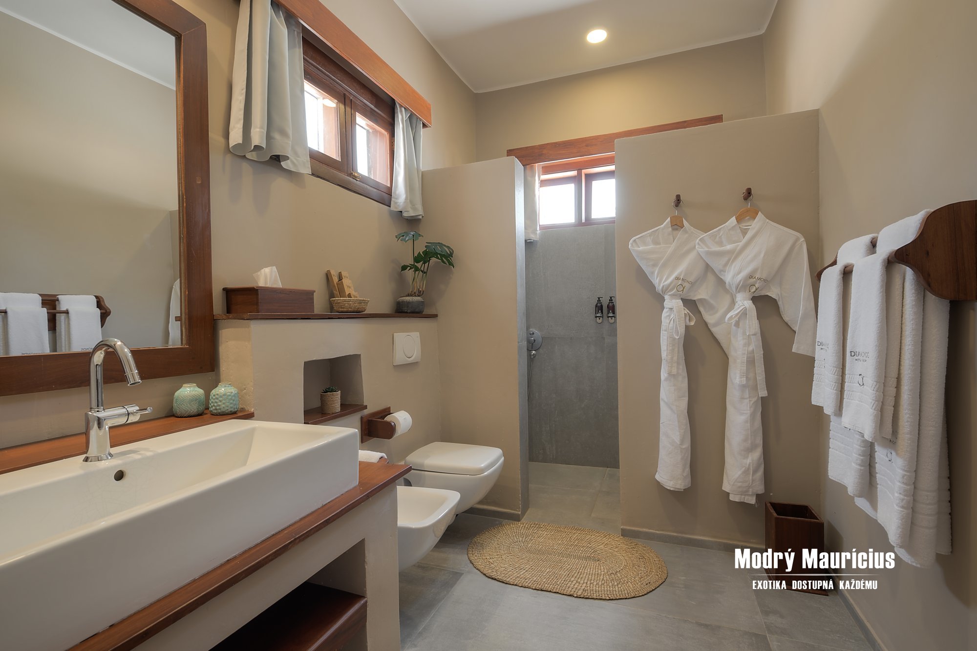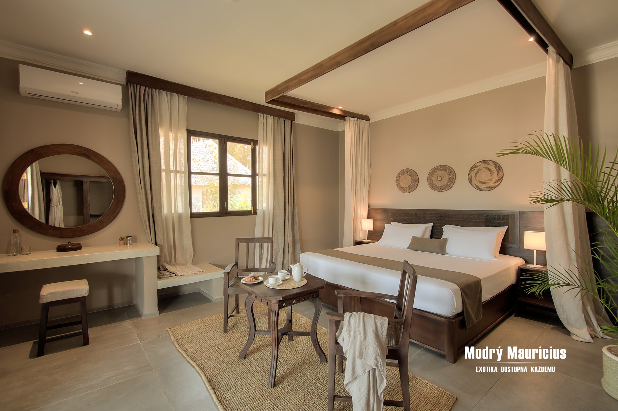 Štandardné vybavenie zahŕňa: veľkú manželskú posteľ alebo dve oddelené lôžka so sieťou proti komárom, klimatizáciu, stropný ventilátor, trezor, mini-bar, príslušenstvo na prípravu čaju a kávy, telefón, privátnu verandu a veľkú kúpeľňu so sprchou, dvojitými umývadlami a fénom.