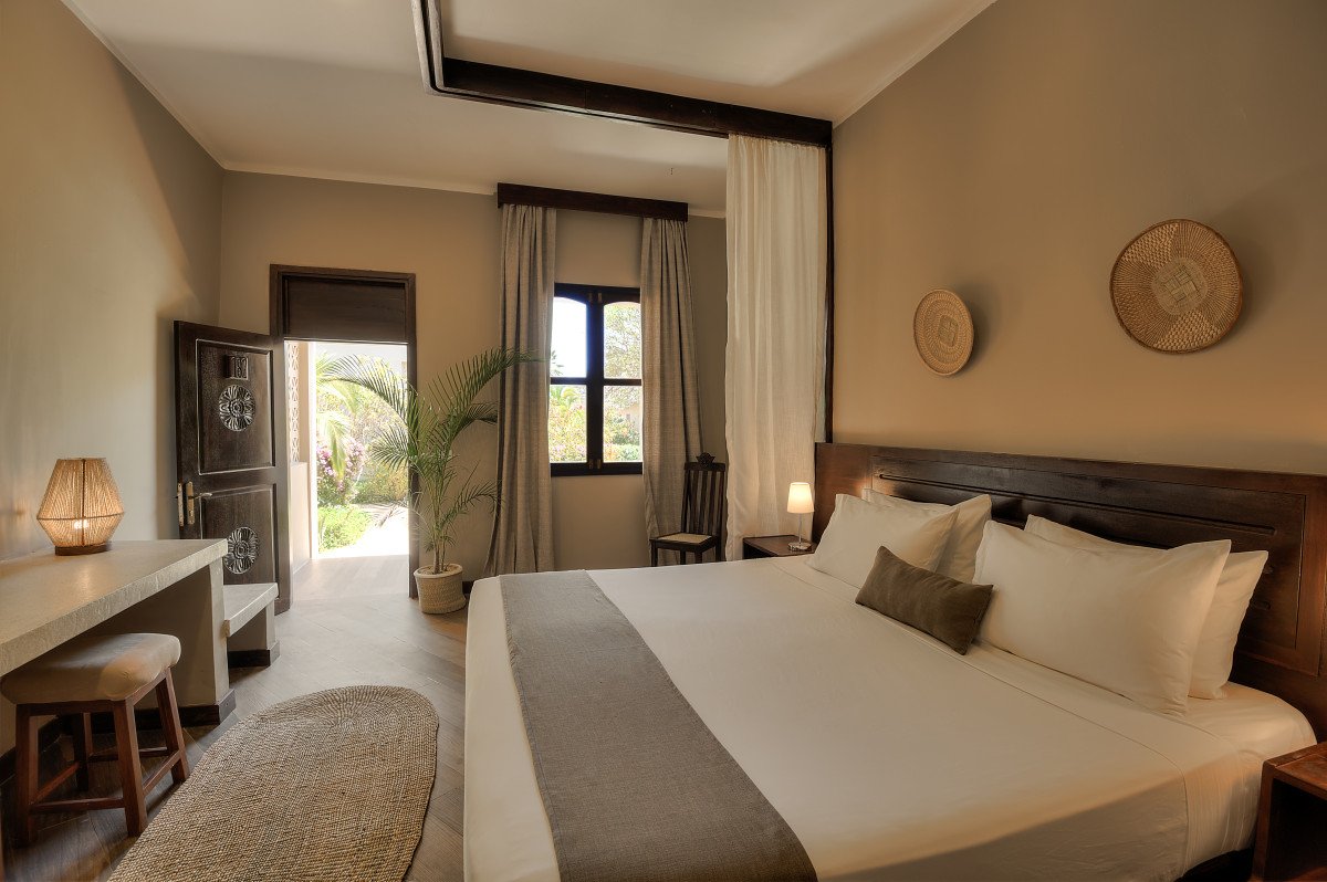 Superior Rooms (celkom 36), zariadené vo východoafrickom štýle, disponujú veľkou súkromnou verandou.